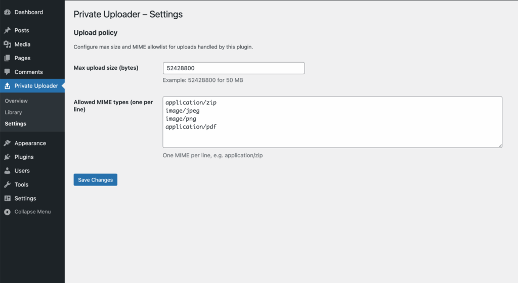 Developers can easily adjust maximum upload size, allowed MIME types, UI styling, and even add encryption or storage policies.